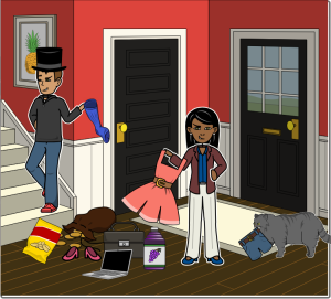 Ex. X: Erwischt! You caught these thieves on your security camera cleaning out your house. Call the police and describe what you see (while practicing new vocab and direct objects in the accusative case!)